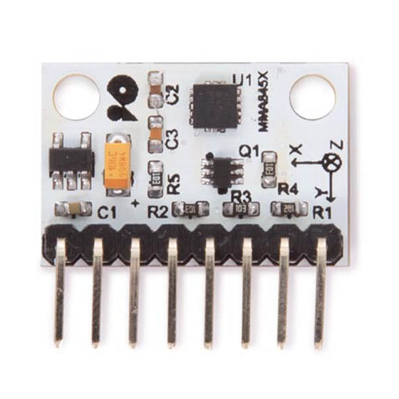 The MMA8452Q accelerometer module is a smart lowpower threeaxis capacitive MEMS accelerometer with 12 bits of resolution. It is packed with embedded functions with flexible user programmable options configurable to two interrupt pins. Embedded interrupt functions allow for overall power savings relieving the host processor from continuously polling data. It has user selectable full scales of +2g/+4g/+8g with high pass filtered data as well as non filtered data available realtime.
