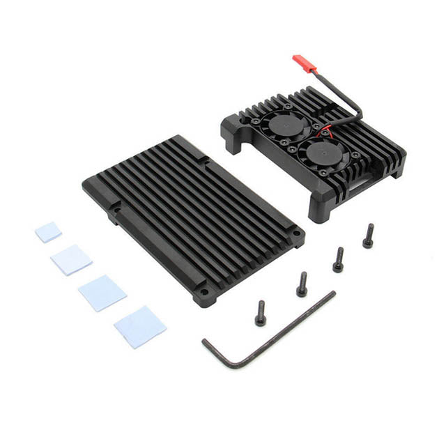 An armor aluminum alloy case with dual cooling fan designed for the Raspberry Pi 4B. This heatsink casing will provide comprehensive protection on top of increased heat dissipation.