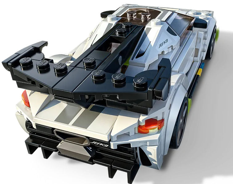 Kids and car enthusiasts will love the LEGO® Speed Champions Koenigsegg Jesko (76900). This detailed replica toy captures the essence of the reallife Swedish megacar with its advanced aerodynamic design that helps deliver a blistering 300 mph ontrack performance. Kids can explore the vehicle as they build before putting it on display or hitting the track for thrilling race action. Realistic detailing This collectible model comes with a wide chassis which allows room for a 2seat cockpit and even more authentic detailing. And with a Koenigsegg driver minifigure complete with racing suit safety helmet and wrench there’s plenty of inspiration for imaginative play. Recreate the drama of the racetrack LEGO Speed Champions building kits give kids and car fans the chance to collect and construct mini versions of the world’s leading and bestknown automobiles. Perfect for display these vehicles are also great for thrilling race action against other vehicles from the Speed Champions range.