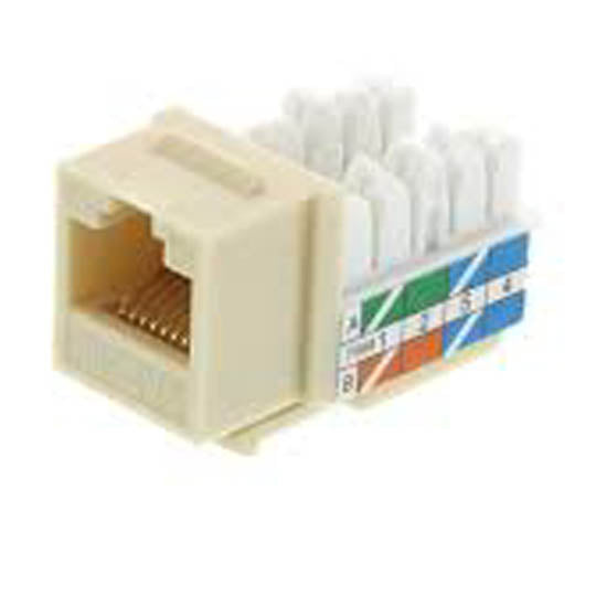 RJ45  CAT5E BEIGE NETWORK / ETHERNET 110 PUNCHDOWN KEYSTONE MODULAR JACK 90 DEGREE Wire paired correctly through connector. Follow colour pattern (568A or 568B) when assembling the jack. 568