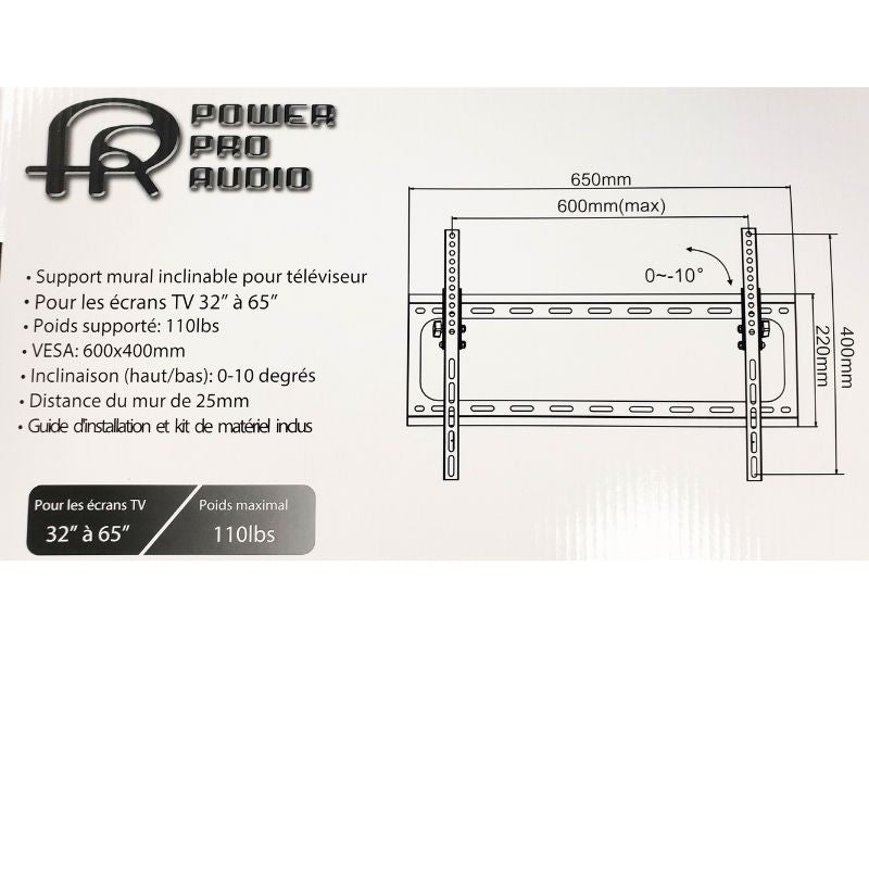 PPA-038 - TV WALLMOUNT 32-65IN TILT 110LB FLAT PANEL -10/+10