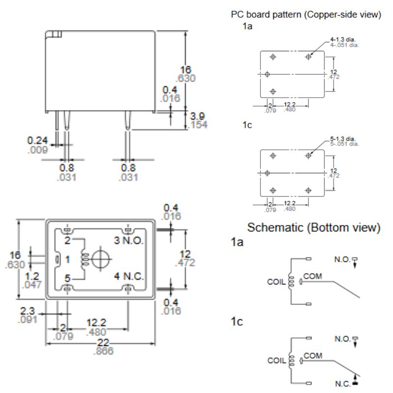 NAIS J51-5V - RELAY DC 5V 1P2T 10A 5P PCMT 10A/125V
