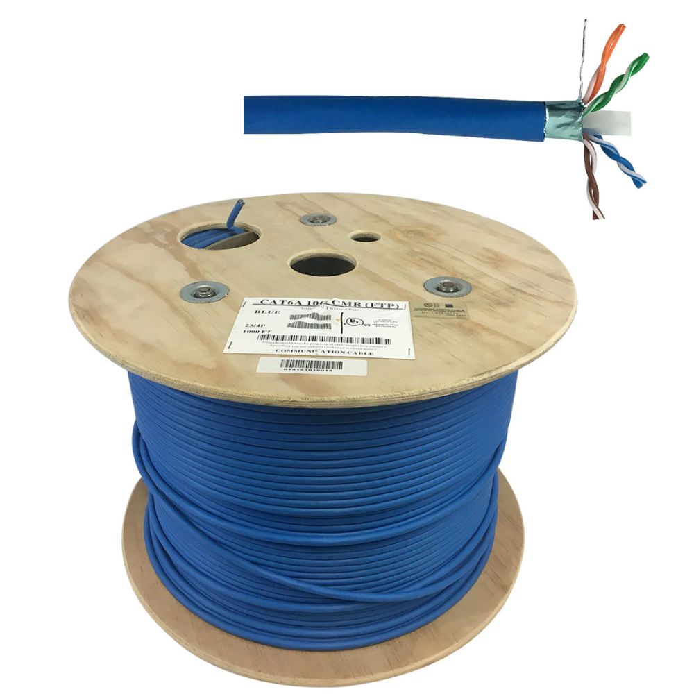1000ft Solid Shielded U/FTP CAT6a (650MHz) Network Cable CMR Blue