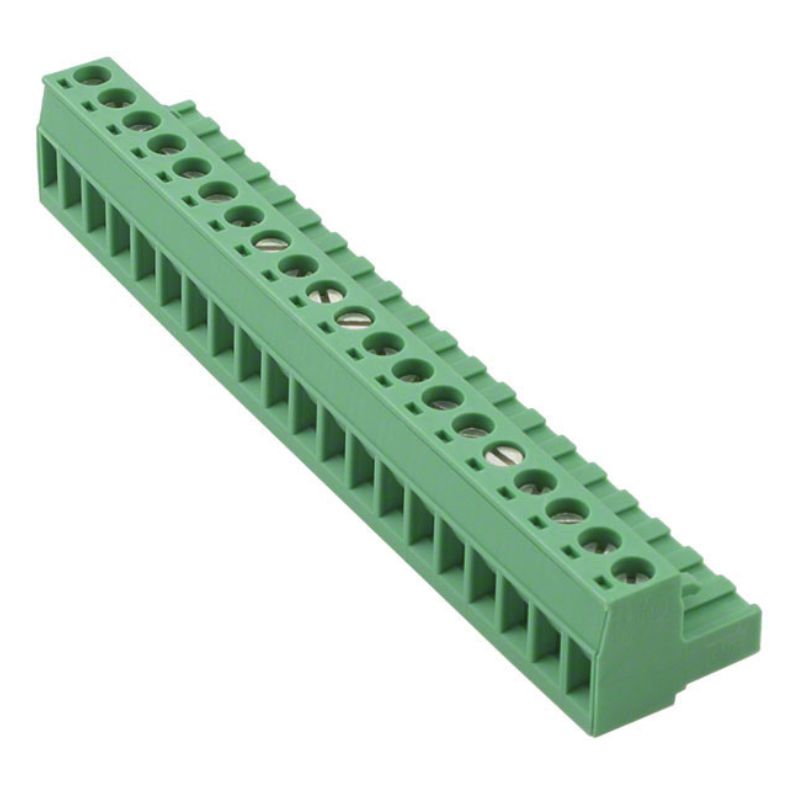 1757190 - TERM BLOCK 20P CLAMP RA 5MM FEM PLUGGABLE GRN