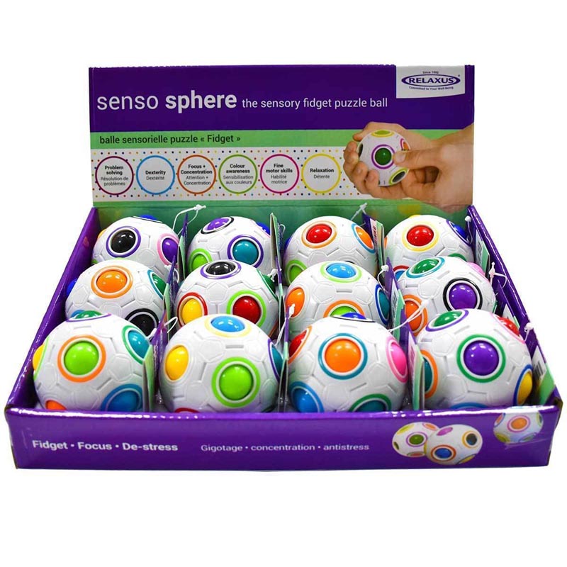 The Senso Sphere is a problemsolving puzzle Fidget Toy. The objective is to scramble the coloured balls then figure out how to get them all back into their matching coloured slots in all hole.