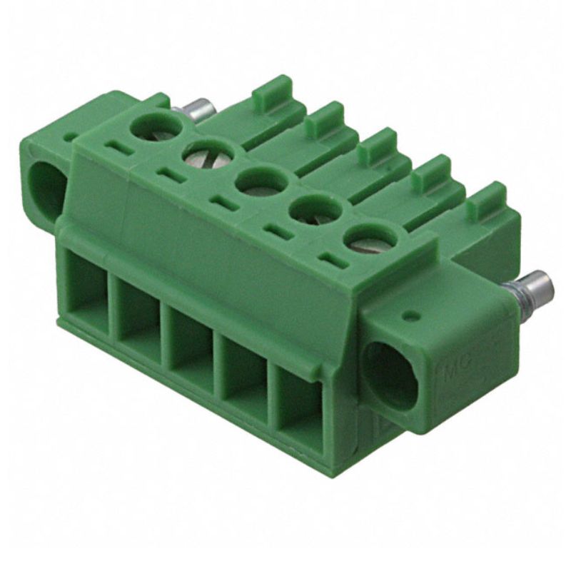MC1.5/5-STF-3.81 - TERM BLOCK 5P FEM PLUG RA 3.81MM 8A/160V GRN W/HDR