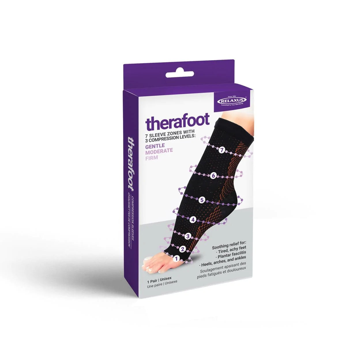 This Foot Sleeve has seven zones with three compression levels: Gentle Moderate and Firm. Soothing relief for tired achy feet plantar fascistic heels arches and ankles.