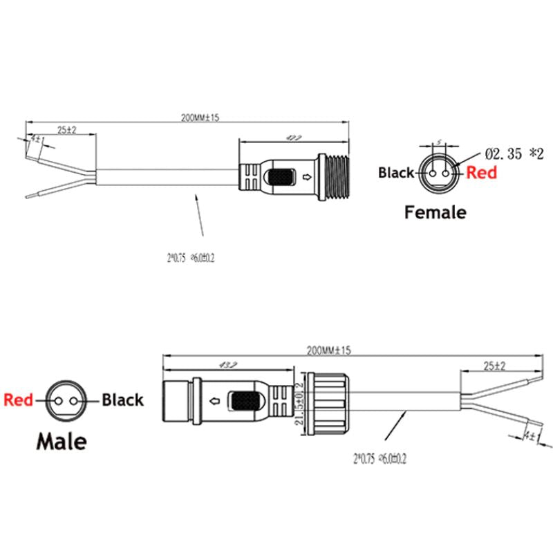 1Pair M16 Waterproof 2 Pin IP65 Cable Wire Plug for LED Strips Male and Female Jack 22mm nut Connector 20CM OD 6mm