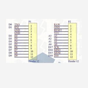 12 digital I/O (5 PWM capability) Rx and Tx hardware are connected in serial