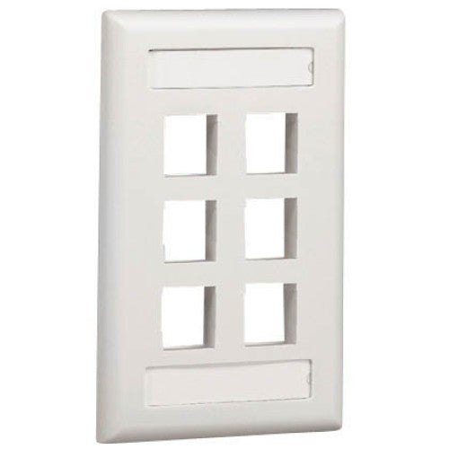 - SINGLE GANG 6 PORT WALL PLATE / FLASH PLATE TO CONNECT THE RJ45 RJ11 RJ12 F TYPE RG6 COAX HDMI FIBER OPTIC RCA KEYSTONE JACKS AND MODULAR INSERTS.