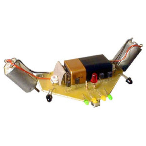 This amazing robot uses its electronic brain to follow or find a light source (such as a standard flashlight). Using its drive motors the Light Spider will scoot across any smooth hard surface (such as a linoleum floor or a wooden table top) looking for light. Unlike ?normal? spiders that hide in the dark our Light Spider robot actively searches for light! While searching a LED array on the front of the robot lights up and blinks.