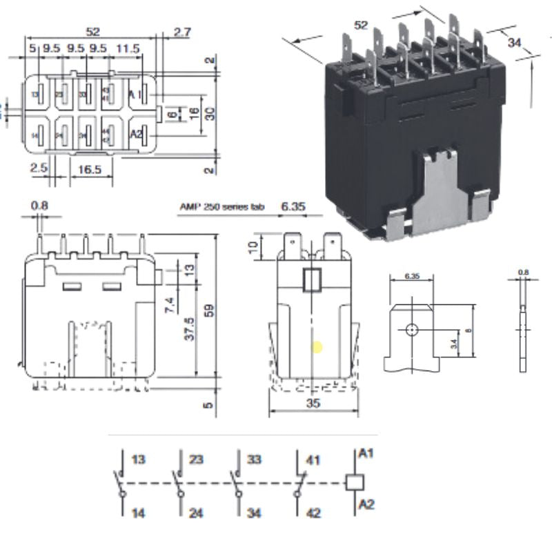 VC15-3A1B-DC12V - RELAY DC 12V 4P1T 15A 10P QT 15A/120VAC BRKT MT