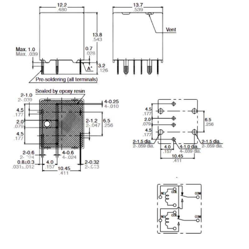 ACJ2112PL01 - RELAY DC 12V 2X1P2T 20A 8P AUTO TWIN 1 FORM CX2 BRIDGE 20A/14VDC