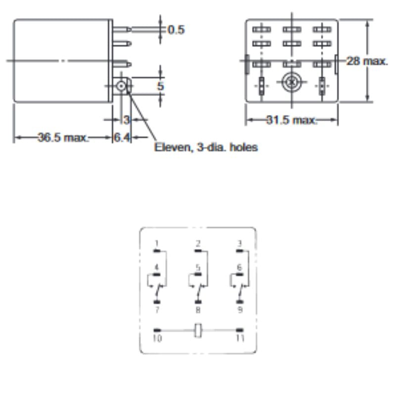 LY3-0-AC120 - RELAY AC 120V 3P2T 10A 11P PCMT 10A/240VAC/28VDC