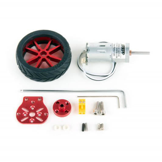 DC25WRIM - MOTOR DC 9V W/WHEEL 57MM AND RIM ALUMINUM BRACKETS TERMINAL KIT