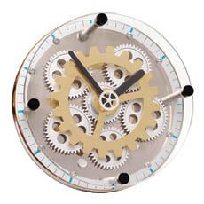 GEARUPBG - GLASS CLOCK ROUND WITH NEW BRASS GEAR