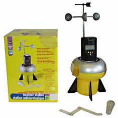 This fully assembled Weather Station features a built in compass & digital display for wind speed humidity and temperature.Unit also measures wind direction rainfall and snowfall.