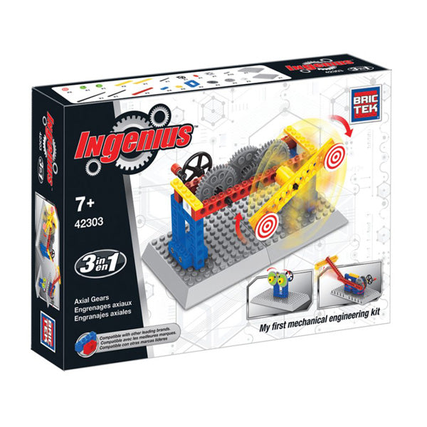 Your first mechanical engineering kit learn how to build models with axial movements and real gears! This set rebuilds into 3 different engineering concepts. Fully compatible with other leading brands.