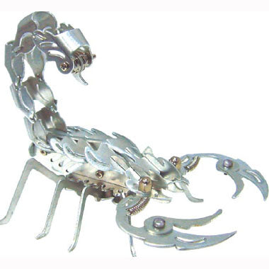 Almost lifelike OWI?s aluminum nonvenomous invertebrate building kit features a Scorpion that you assemble from metal and bendable aluminum parts. The Samurai Scorpion is comprised of two major parts: head and body. The head consists of a pair of eyes mouth and claws used to capture prey. The body contains eight legs tail and curved aculeus (stinger). Did you know that scorpions are nocturnal? They often feed at night by lying still and surprising their prey (dinner). On the other hand they are dinner for tarantulas bats and birds (especially owls). The kit contains 30 hard and soft prepunched aluminum parts 7 screws 7 nuts 3 springs and assembly tools are included. Its claws arms legs and tail are all moveable.
