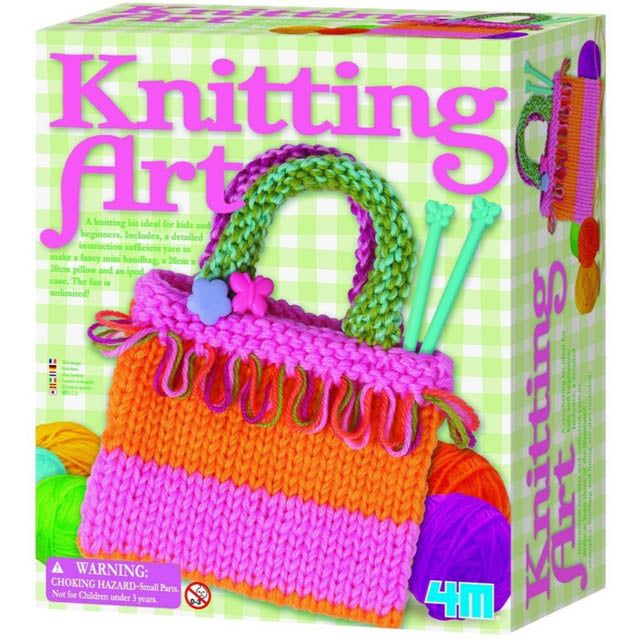 Discover the joy of knitting with this simple to learn knitting kit! Knitters can choose between making a mobile phone/mp3 player case a colourful cushion cover or a stylish handbag. Everything you need is included: 2 pairs of knitting needles 1 plastic sewing needle colourful yarn buttons and detailed instructions. It's a fun and fashionable introduction to knitting!