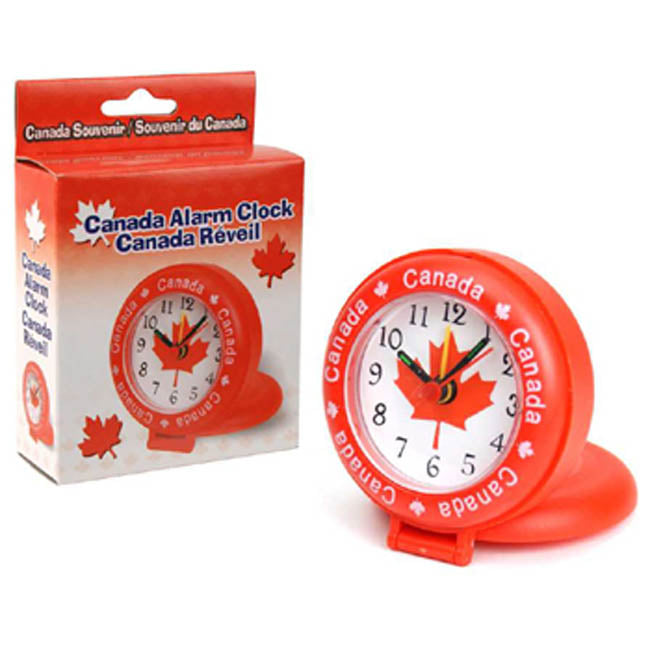 62258 - CANADA SOUVENIR ALARM CLOCK 3INCH DIA REQUIRES 1XAA BATTERY