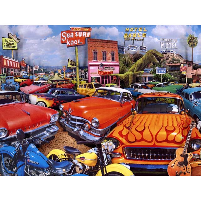 77433 - JIGSAW PUZZLE SEA SURF DRIVE INN 24X18IN 750PCS CLASSIC CARS