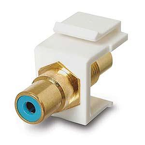 - RCA Keystone Inesrt with blue center jack joins cables with RCA plugs
