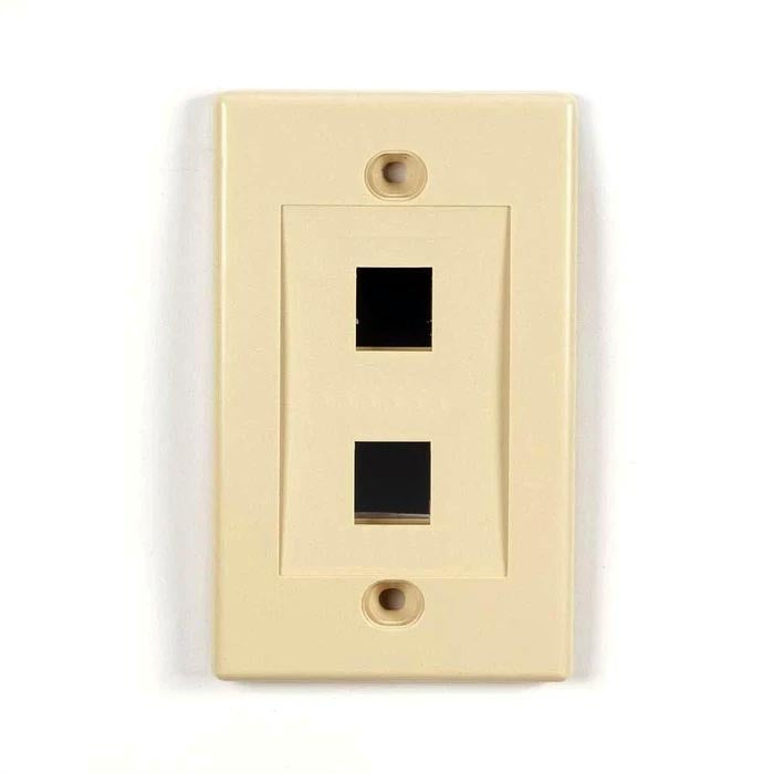 • SINGLE GANG 2 PORT WALL PLATE / FLASH PLATE TO CONNECT THE RJ45 RJ11 RJ12   F TYPE RG6  COAX HDMI FIBER OPTIC   RCA KEYSTONE JACKS AND MODULAR INSERTS.