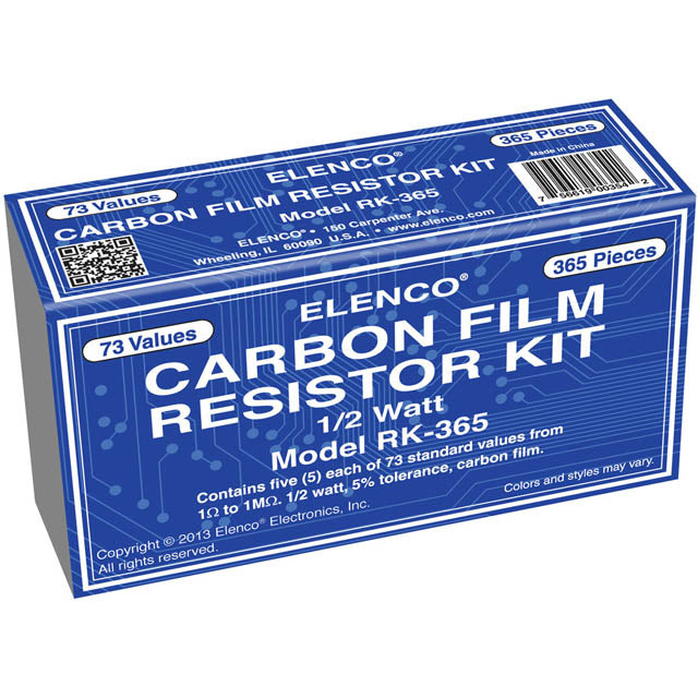 RK-365 - RESISTOR SET ASSORTED 1/2W 5% CF 5 EACH OF 73 STD VAL FROM 1R-1M (365 pcs/pkg)