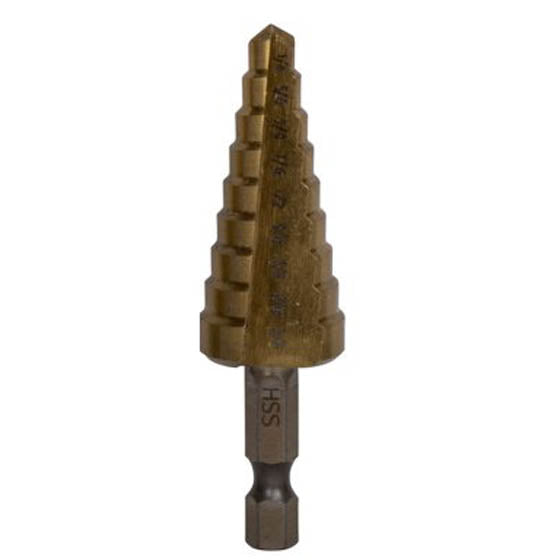 TNHE-1423 - STEP DRILL BIT 1/4-3/4IN HSS WITH TITANIUM COATING