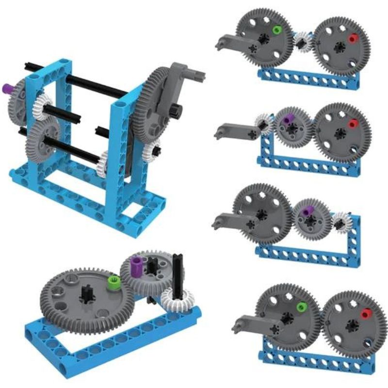 Start off with simple models to guarantee a firm understanding of the basic principles at play and then move onto larger more complex models to push the machines harder and see how they can work together. Also included is a specially designed spring scale so that you can measure how the machines change the direction and magnitude of forces making work easier to do. With this durable modular construction system you can see how the same basic elements combine in different ways to form each machine. The models can be assembled and disassembled again and again; combine the pieces to create your own configurations limited only by your imagination! In addition to the invaluable handson experience you’ll get from model building the 32page fullcolour manual also dives into examples of simple machines in action in everyday life. The seesaw at the playground the wheelbarrow in your backyard the flagpole in front of your school — all of these are examples of simple machines in the real world! So start building investigating and experimenting to discover how physics is all around us!