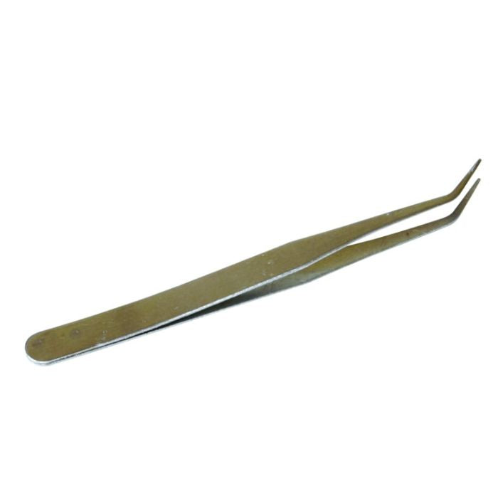 4 1/2 curved stainless steel tweezer. Suitable for handling SMD components and small parts.