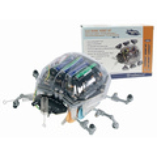 The Ladybug Robot walks on 6 legs and uses infrared emitting diodes for eyes in order to avoid obstacles. Ladybug walks straight ahead but automatically makes a left turn the moment an obstacle is detected.