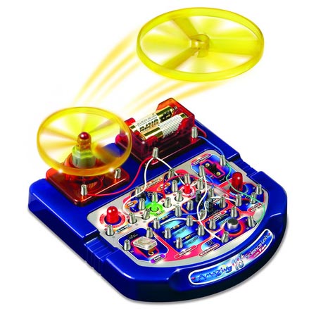 More than 18 exciting educational experiments! Teaches realistic concepts of electronics and electricity while encouraging independent discovery and learning. Activities include flying fan LED light adjustment for brightness control super sound detector to onset fan and many more! For ages 8+