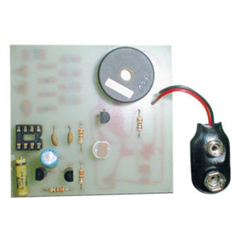 Here is the perfect kit to learn soldering technique for both standard and SMD components. Begin by soldering various standard lead components such as transistors capacitors and an IC socket and then progress to SMD sections on the reverse side of the board where you will practice soldering various SMD components such as transistors diodes resistors capacitors and an IC. Finally you will build a functional Insanity alarm Kit (similar to C6240) which is constructed using both standard and SMD components.