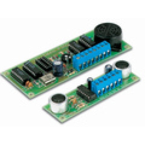If you have problems parking then this kit is for you. Using (ultrasonic) sound waves whose frequency is beyond our range of hearing we can measure a distance. Consequently a sensor mounted at the back of the car can give an indication of the distance between your car and the car parked behind you or other obstacles (only at the same height as the sensor). When the preset minimum distance is crossed an audible signal is generated.