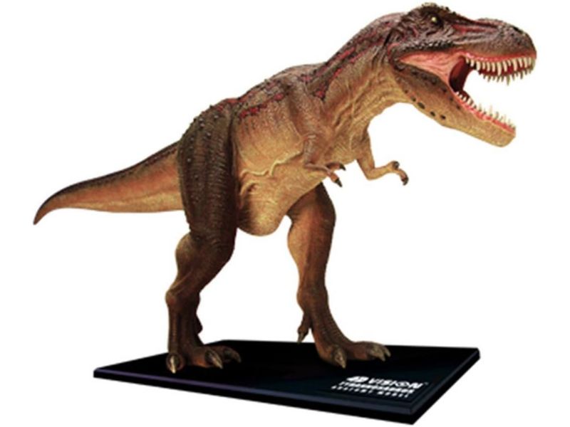 This TRex kit contains 39 parts. It has fine detailed sculpting and handpainted parts. Organs and body parts detach. Display platform and illustrated guide book are included.