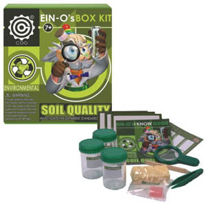 Learn to protect planet Earth with this environmental box kit. Anyone can perform simple experiments and learn about soil quality. EinO's I Know Guide included.