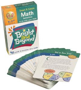 Bright and Beyond Math is a deck of illustrated activity cards designed to use products found right in your own home to improve important math skills for your child. The ideas as simple and smart. They are simple ideas and are pretty selfexplanatory so that means not spending much time reading instructions.