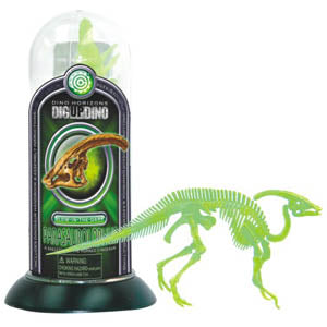 Seven inch snap together test tube dinosaur skeleton is glowinthedark. Educational information about parasauolophus included. Collect all six styles