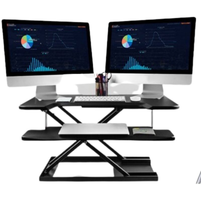 Gas Spring Structure Sit to Stand Desk Riser Fits Dual Monitor