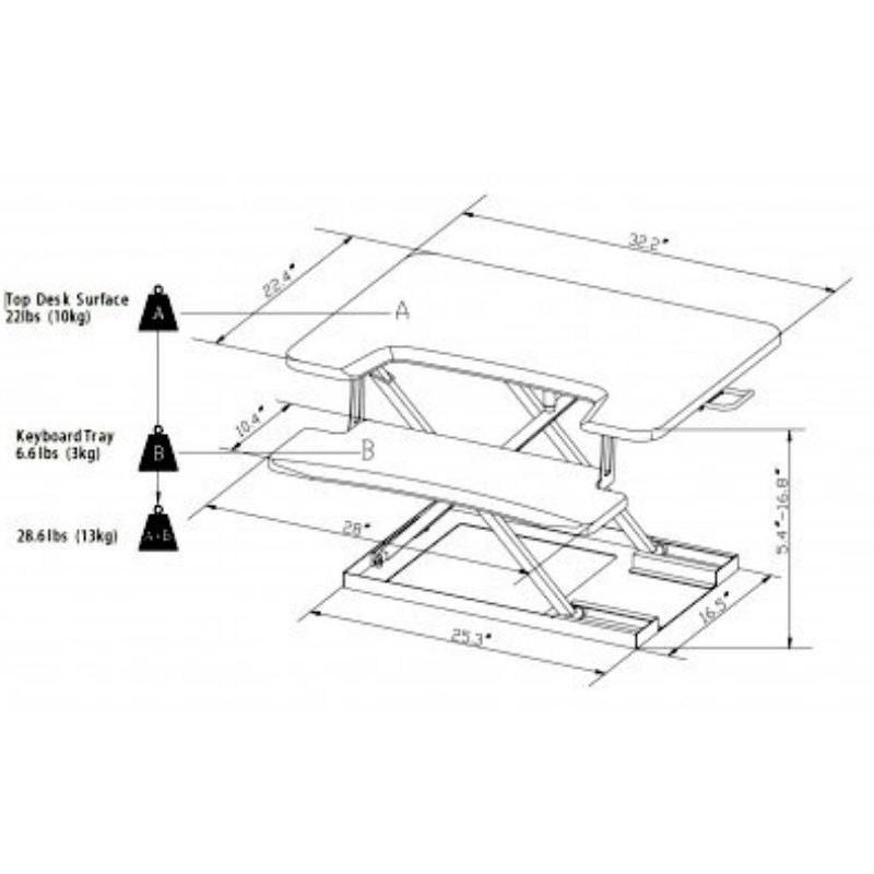 Desktop Max.Load 10kg/22lbs Keyboard Tray Max.Load 3kg/6.6lbs Keyboard Tray Size 700x253mm/27.6x10inch