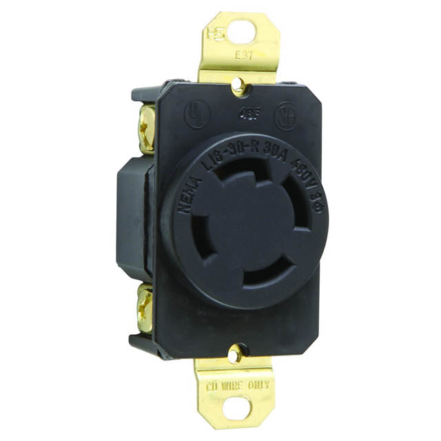 30Amp 480V 3Pole 4Wire 3Phase NEMA L1630 Turnlok Single Receptacle Black