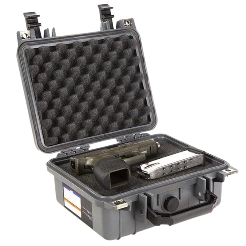 The renegade series 16” waterproof case by sure lock security was created to keep your valuables protected in the most rugged conditions. Perfect for largess valuables and firearms at 1.3ft long this lightweight reinforced polypropylene case is road ready and can be sealed air tight and locked (via padlocks sold separately). Shock proof and you guessed it – waterproof this 16” renegade case has your back in every condition and with the pressure relief valve there’s no need to fret about not being able to open your case (due to elevation change). No matter where your journey takes you the 16” renegade case will equalize the pressure inside the case automatically. Smooth easy open and close upgraded locks can be effortlessly opened with your little finger yet are hardy enough to tightly secure the dust and waterproof rubber seal. The spongy customizable foam interior creates the perfect setting for everything you want to store in your 16” waterproof renegade case. From firearms to watches or camera equipment the renegade series is the transportable secure safety solution you’v been searching for. Backed by sure lock security's lifetime guarantee the renegade series waterproof cases provide tough reinforced protection to safely secure you valuables and firearms.