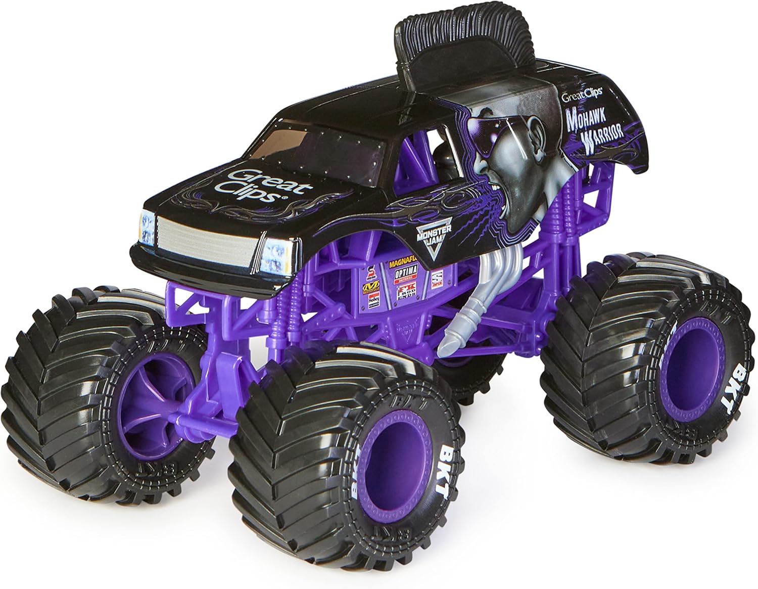 • AUTHENTIC REPLICA: The 1:64 diecast series features more detail and lifelike graphics bringing the Monster Jam action right to you! Official BKT Tires stylized chrome rims and an authentically styled chassis with chrome detailing make it feel like yo