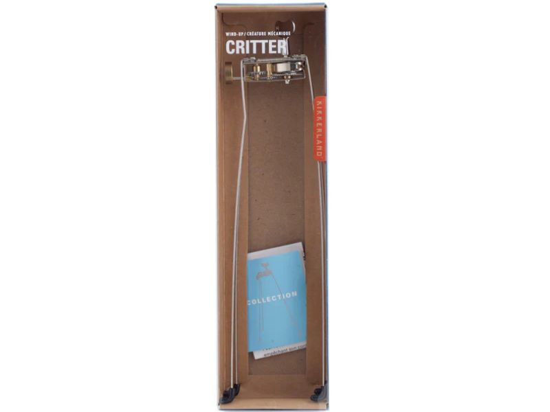 Critter was conceived by chance at the studio of a motion display company called Hankscraft Motors in NYC. It has a godfather called David Dear creator of the fabulous Duck Mirror the Rainbow Maker and many other amazing products. The first four thousand Critters were made by hand using a vintage Japanese gearbox from the 1950's found at a surplus store. The first place that sold Critter is called Mxyplyzyk so between Hankscraft Mxyplyzyk and Kikkerland you get the idea what we're dealing with here. Essentially a no form follows no function object.