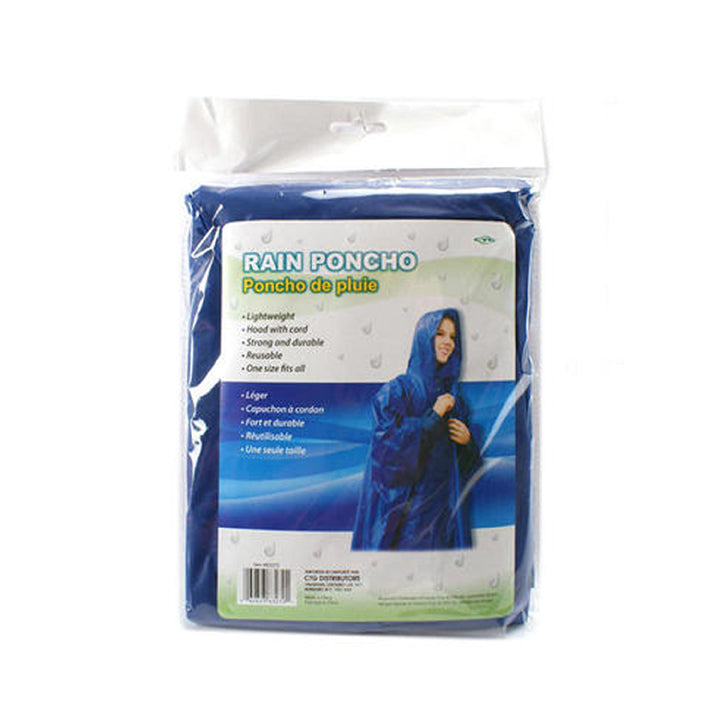 83270 - TRAVEL RAIN PONCHO REUSABLE W/ HOOD AND CORD ONE SIZE FITS ALL