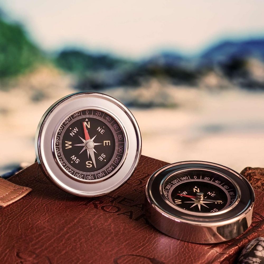 This sturdy Stainless Steel Compass by Heebie Jeebies features a glowinthedark dial. It is 2.5 inches in diameter and fits easily in a pocket so you'll always know which way you're going. The first compass was invented around 200 CE in China and pointed south. Look how far we've come since then.