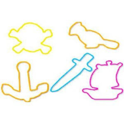Different Pirate theme shapes have been created are worn as rubber bracelets and they collect the whole assortment of shapes and colors