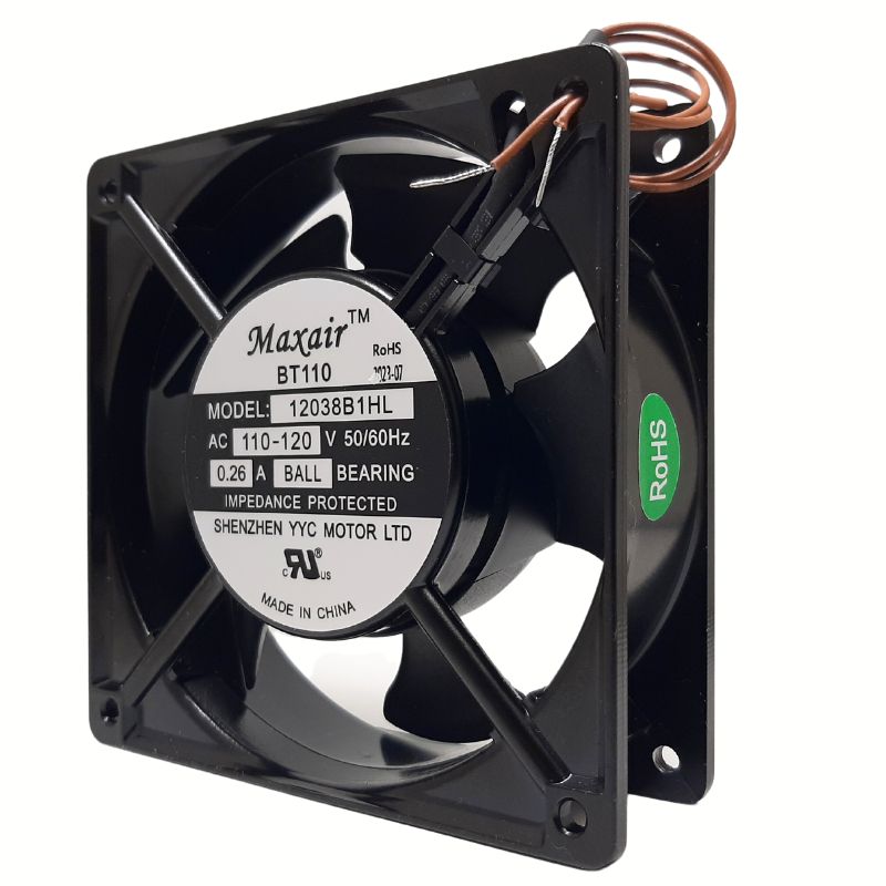 12038B1HL - FAN AC 120V 4.7X1.5IN BB WITH 2 WIRES AND FAN GUARD 68CFM 28DB